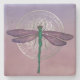 Räcka-målad grön slända med lilavingar och en silvermandalasmyckning mot enrosor vattenfärgbakgrund