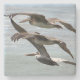 Underbara pelikanfåglar som flyger på den digitala målningen för stranden från fotografi, är på denna stenkustfartyg.
