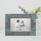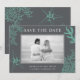 En modern kuststrand tog fotot på personligen med bröllop spara datum-kort med din foto och bröllop-information omgiven av -grönt- och stjärnfiskkorall i akvajakafisk och inslag över en rik grått-bakgrund. Svarta och vita foton ser särskilt bra ut med den här designen, men du kan också använda ett färg-foto om du vill.