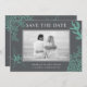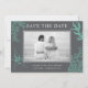 En modern kuststrand tog fotot på personligen med bröllop spara datum-kort med din foto och bröllop-information omgiven av -grönt- och stjärnfiskkorall i akvajakafisk och inslag över en rik grått-bakgrund. Svarta och vita foton ser särskilt bra ut med den här designen, men du kan också använda ett färg-foto om du vill.