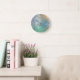 Kustgrunge | Blått och Grönt Vattenfärg Guld Rund Klocka