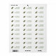 Vita returetiketter med svält och löv dekoration. Mörk grönt tryckt text kan läggas till i tre eller fyra linjer efter behov.