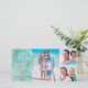 Fotokort för julhälsning med kust-, strand- eller tropiskt tema som har en SEAS & HÄLSNING-titel i ett kalligrafiskt skript för elegant i vitt accentuerat med stjärnfisk mot en vattenfärgsduk för turkos. På framsidan finns tre bilder och baksidan finns ett foto och din hälsning mot akvakan rand och guldbrun och turkosa bakgrund. ASSISTANS: Om du vill ha hjälp med designändringar eller anpassning, ändra storlek på färg, flytta designen till en annan produkt eller om du vill samordna objekt kontaktar du designern INNAN ORDERING via Chattan Zazzle MESSAGE eller e-post makeitaboutyoustore@gmail.com.