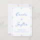 Öka din bröllop-dekoration med den här eleganten blå snäckan "Kort och gåvor", perfekt för en kust, strand eller nautiska bröllop. Med en delikat handdragen snäcka gräns i en mjuk blått nyans, leder detta tecken gästerna att lämna sina tankfulla gåvor och hjärtfiltkort i stil. Fullt anpassade med parets datum namn och bröllop, detta tecken blandar tidlös elegans med havsbottencharm. Oavsett om du gifter sig i Nantucket, Hamptons eller Santorini, så ger detta sofistikerade men ändå enkla tecken en förfinad beröring till din gåva bord.