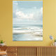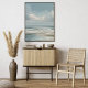 Ge in känsla av lugn och frid i ditt utrymme med denna mjuka kustlandskapsbild. Med mjuka havsvågor, en ljus horisont och luftiga moln i dämpade blå och sandiga nyanser skapar detta konstverk en fridfull och uppfriskande atmosfär.