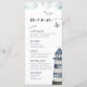 Denna meny har akvarell nautiska mönster, den eleganta typografin kompletterar designen perfekt.