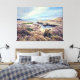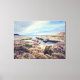 En panoramisk syn på ett tåligt kusten, med en rad grova utstrykningar i havet. Förgrundsinformationen domineras av ett fält av känsliga, rosa vilda blommor, medan bakgrunden visar en stor utbyggnad av blått vatten under ett grumligt himmel. En ensam fågel sprider sig och gör scenen lugn.