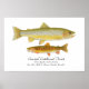 Från ursprungliga vattenfärgsstudier av vuxen Sea Coastal Cutmynning Trout och den juvenile (parr) Stream Resident Coastal Cutmynning Trout av vattenkonstnären Thom Glace