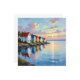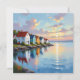 Vackert illustration av en stuktningsrad på kusten i ett havsvik eller ett havsintag vid solnedgången. Sol reflekterar över det flodmynande havet vatten.