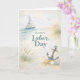 Denna lugna arbetsdagsdesign frammanar den stillhet som en tyst kustutflykt för med sig och symboliserar vila efter hårt arbete. Mot en mjukt texturerad, solblekt bakgrund framträder hälsningen "Happy Labor Day" i en mjuk blå skrivstil, omgiven av fredliga kustmotiv. En segelbåt glider över lugnt vatten under flygande måsar, medan strandgräs, snigelskal, en sjöstjärna och ett repomslutet ankare vilar längs stranden. Den dämpade färgpaletten och luftiga kompositionen skapar en lugnande, reflekterande stämning - perfekt för att fira arbetsdagen som ett ögonblick av välförtjänt avkoppling vid havet.