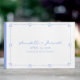 Hämta kärlek och minnen från bröllopsdagen med den här handboken för elegant blå snäcka. Designat för kustnära chic och nautiskt temat bröllop, uppvisar denna gästbok en känslig handdragen gräns av sjöhäckar i en tidlös blått nyans. Med anpassadet kan du anpassa det med parets namn, datum och plats för bröllop. Perfekt för strandvallar, firande och strandbottnar i elegant. Den här gästboken blandar klassiskt charm med en ny, modern beröring.