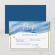 Dessa eleganta och graciösa RSVP-kort har en design som är handmålad akvarell i nyanser av ljusblått, klassiskt blått och marinblått. Den abstrakta designen liknar havsvågor, perfekt för ett evenemang med beach-, havs- eller nautiskt tema. RSVP-informationen är inramad av en guld (simulerad folie) kant, vilket ger evenemanget en touch av elegans. Texten och baksidan av kortet visas i en nyans av klassiskt blått, men kan ändras till valfri färg du önskar. Ändra enkelt texten för att anpassa dessa RSVP-kort för ditt speciella evenemang.