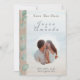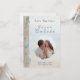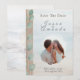Meddela din bröllopsdag med effortfull kustnära elegans. Detta "Save the Date"-kort har en mjuk akvarell-strandlinje, en varm drivvedsaccent och en vertikal eucalyptus-illustration som ger naturlig serenitet till din design. Er foton är inramad i en subtil handmålad cirkel, vilket skapar en romantisk fokuspunkt som känns luftig, modern och tidlös.