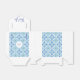 Lägg till en charmig kustnära touch till din bröllopsfest med denna medelhavsinspirerade kakel-favoritbox, med akvarell- handmålad kakelkonst på framsidan och baksidan. Den nedfällbara fliken innehåller ett djupt koboltfärgat “Tack”-manus med en anpassningsbar andra rad, och baksidan kan anpassas med brudens namn eller evenemangsinformation. Färdig med ett sött vitt band, är denna lilla tältbox perfekt för godis, små godsaker eller hjärtliga tacksamhetsgåvor.