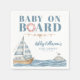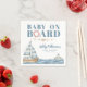 Denna nautisk babyduschnapkin har en klassisk blå och vit segelbåt i mitten, flytande på blått vatten med ett rött liv ring och subtila rep för en charmerande marin beröring. Överst visas "Baby On Board" i en blandning av delikat handskrivet skript och klassiskt serif typsnitt, allt i blå nyanser för ett djärvt och tidlöst utseende. Resten av texten kompletterar mönstret i samma elegant stil. Perfekt för en babydusch eller ett havsininspirerat firande, den här dockan lägger till en samordnad och snyggt detalj till din party-installation. Anpassa texten, typsnitt och färg för att matcha din händelse!