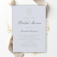 En falskt präglad formell bröllopsdusch-inbjudan som är enkel men sofistikerad, tidlös och elegant, pryds av detta traditionella bröllopsdusch-kort med ett nautiskt kusttema. Ett litet, falskt präglat snäckskal är den stiliserade ersättningen för en vapensköld. Observera att prägling skapas genom en bild och ingen verklig prägling kommer att synas på kortet. Denna moderna klassiska falskt präglade bröllopsdusch-inbjudan är perfekt för brudar som föredrar formella traditionella bröllopsdusch-inbjudningar och som älskar den präglade effekten. Ett vackert val för en nautisk bröllopsdusch, på stranden, en yachtklubb, vid en sjö eller vid vattnet.