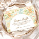 En fantasifull akvarelldesign med en lekfull blandning av pastellfärgade sommar djur omgivna av tropiska blad, snigelskal, sjöstjärnor och mjuka botaniska detaljer. Den glada färgpaletten i persika, mint, korall och mjukblått skapar en lätt stämning som i en saga, medan den eleganta valvformade layouten håller firandedetaljerna vackert inramade och lätta att läsa. Perfekt för en varm, glädjefull sommarfirande med en charmig barnkammare-estetik.