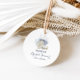 Kustnära strand blå snigelskal bröllopsdusch gåvor etiketter