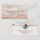 Skapa ett varaktigt intryck med detta eleganta kustinspirerade visitkort, med en handmålad akvarellstrand med mjuka vågor över mjuk sand. Ditt företagsnamn och monogram visas högst upp i en raffinerad snäckformad vapensköld för en personlig och professionell touch. Baksidan har en mjuk accent av strandillustrationen med utrymme för ditt företagsporträtt, inramat i en koordinerad snäckdesign. Anpassa med din kontaktinformation för en polerad, kustinspirerad look. Perfekt för en mängd olika företag - från fastigheter, semesteruthyrning och finansiella tjänster till spa, hotell och mer - detta design ger en lugn, lyxig kustvib till alla varumärken. Design, layout och illustration ©Moodthology Papery