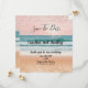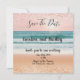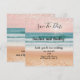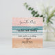 Meddela din speciella dag med detta eleganta strandtemade "Save the Date"-kort. Med ett havsinspirerat formspråk och accentuerat med rosa glitter upptill och nedtill sätter detta kort tonen för en kustnära ceremoni eller en destinationbröllop. Det skimrande rosa glittret ger en touch av glamour och sofistikation, vilket gör det perfekt för dem som drömmer om ett bröllop vid havet. En innerlig hälsning på baksidan ger en personlig touch och säkerställer att dina gäster sparar datumet för din förtrollande havsutsiktsfirande.