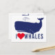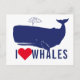 Skicka ett vykort till dina vänner för att visa kärlek på valar. Den här utformningen har en blå val på framsidan med citatet "I ♥ Whales". Designad av konstnärer ©Tim Coffey och Susan Coffey.