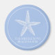 Denna vackra kustinspirerade runda magnet har en vit stjärnfisk på ljusblått. Anpassa med ditt val av namn eller speciell text.