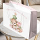 Klar julklapp i personlig för en flicka med söt nalle och Julgran i rosa, vitt och grönt. Anpassa texten enkelt. - Kate Eden Art