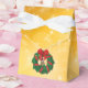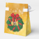 Den här söta chipmunken med en julhatt håller på att ta sig ut från baksidan av en helgrön julkrans med rött band och guld och en stor röd båge för att fira julhelgen.