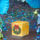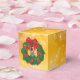 Den här söta chipmunken med en julhatt håller på att ta sig ut från baksidan av en helgrön julkrans med rött band och guld och en stor röd båge för att fira julhelgen.