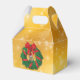 Den här söta chipmunken med en julhatt håller på att ta sig ut från baksidan av en helgrön julkrans med rött band och guld och en stor röd båge för att fira julhelgen.