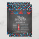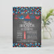 Modern konfektyrnautisk babydusch för pojke. Vår contemporary- och roligt-pojkars babydusch i inbjudan har fet och skarp röd och blå konfetti som är placerad på en populär bakgrund i kritan med en röd och blå segelbåt, val, frakt, ankare och krabba och en fyr.