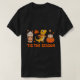 En glad tecknad som är skägrad drake med en halsduk mellan en pumpa och en falldryck, omgiven av höst löv och ord ""Tis the Season".