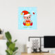 Den lilla jultomten och den röda kardinalfågeln på ljusblå bakgrund Poster.