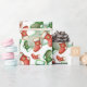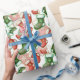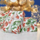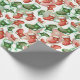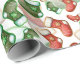 Kläddra och små julfyndigheter i rött och grönt låda en roligt och i mönster på detta inslagna papper.