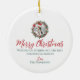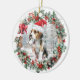 Klar julprydnad med en söt beagle-valp i en julhatt i julklapp och bärodd. Personlig hund, valp, söt julprydnad (text på baksidan).