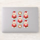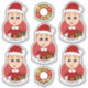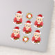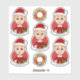 Sju kapade vinylklistermärken med illustration av en söt liten lycklig-leende pojke med kort ingerhår, som är klädd i julkläder och bär en röd Jultomten-hatt, på röd bakgrund, fem klistermärken för pojken och två klistermärken med en julkrans, med en anpassade textmall för ditt namn eller meddelande
