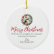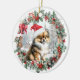 Klar julprydnad med en pommansk hund-valp i en julhatt i julklapp och bäddkrans. Personlig hund, valp, söt julprydnad (text på baksidan).