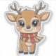 Den här söta renen med stort ögon är redot till vintervädret. Hon bär en röd och gräddhalsduk runt hennes nacke.