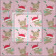 Kute, lilla julrenar med tomthattar och sjalar på ljus rosa bakgrund