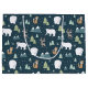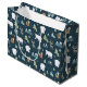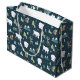 God jul-presentpåse med ett vismiskt festivt mönster. Polar, renar, träd, rävar och snöflingor. Mörk grönt.