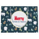 God jul-presentpåse med ett vismiskt festivt mönster. Polar, renar, träd, rävar och snöflingor. Mörk grönt. Ett runt ram med faux guld foil gräns med God jul inskrivet i.