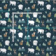 Fabric med en sikisk festive mönster. Polar, renar, träd, rävar och snöflingor. Mörk grönt.