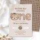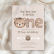 Gratulera till din lilla födelsedag med den här berömvärda björntemainbjudan. Med en handritad nalle ansikte, mysiga bruna toner och en lekfull "ONE"-text är den här designen perfekt för ett tema som neutralt, skog eller rustik party. Anpassa med ditt barns namn, datum och party. Ett sött och tidlöst val för pojkar, flickor eller gender-neutralt firande.