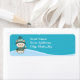 En söt polar med rosa kinder klär sig varmt i en sticka hatt och svettas som vinkarare på en vinter under. Adress-etikett för dina julkort till helgdag.