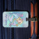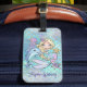 Blonde sjöjungfru barn bagagemärke för en flicka, med en design i blått, rosa och guld färg. Personlig med namn eller anpassningsbar. Den har en söt delfin, sköldpadda, stjärna, slott och havslevande varelser med faux glitter-skalor i bakgrunden.