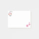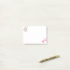 Cute white mus och rosa blommor på vit Post-it Notes.