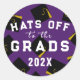 Kuvertförseglingar i kreativ studenten, partimärken eller gradklistermärken med svarta och guld studentmössor på lilans bakgrund.