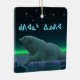 Ett fredligt ögonblick i den långa arktiska natten. Ett Polar Bear vilar vid kant i ett öppet utrymme i förpackningsisen. Norra Ljus glöden i avstånd; ljusstjärnorna skymmer. Inuktitut text med texten "Kuvianak Innovia" (ᑯ ᕕ ᓇ ᒃ+ᓄ öppningar - God jul), i det stavelsealfabet som antogs i Nunavut, visas också i ljusblå och vit stil. Inuit kallas vanligtvis eskimo, men det begreppet missgynnas nu eftersom det anses vara nedsättande. Polarnas björnar är i fara. Hur mycket längre kommer sådana scener att kunna inträffa? Hjälp spara Polar Bears från utrotning.