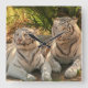 Par av vit tiger vilar i skuggan.