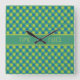 Kvadratisk väggklocka, blått och Grönt Polka dots Fyrkantig Klocka